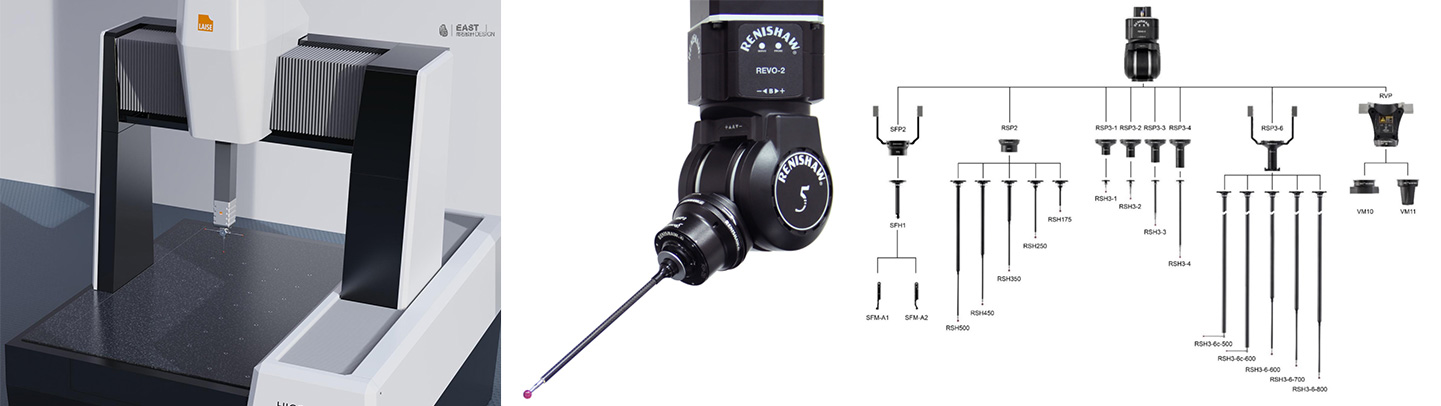 測量行程在800mm左右的機器,都可以配置英國雷尼紹最新技術的 REVO5軸聯動測頭與多種模塊的傳感器,可以做到高效、高精度、多功能性。